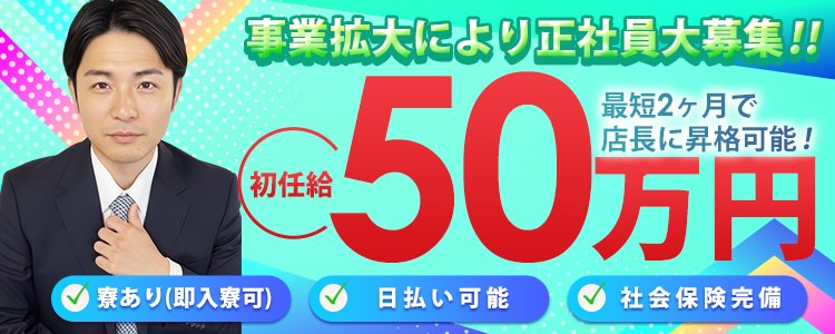 ■ウルトラグループはこんな皆さんにぜひ応募を考えてほしいです■ ・思い描いていた「今」を手にできず、不満を抱えている方 ・どんな分野でも「日本一」を体感してみたい方 ・何かをきっかけに自分を変えたいと思っている方 ・誰かの喜ぶ顔を見るのが好きな方 そんな皆さんは、ぜひ一度ご連絡ください。間違いなくお力になれます! ■昇格・昇給は業界最速■ 頑張った努力を正しく評価し、昇給・昇格をご用意しています。 ちなみに最短記録はなんと12日! もちろん急がなくても大丈夫。1ヶ月後、3ヶ月後と、あなたの成果を正当に評価します! だからこそ、本気で年収1,000万円を目指して一歩一歩進んでいきましょう!! ■未経験の方も経験者の方も初任給は50万円!■ 風俗業界でも間違いなく最高峰の待遇である『初任給50万円』!! スキルによっては、1年もしないうちに年収1,000万円を超える方もいます。 でも「何もできない、何も分からない、何も知らない」というあなたでも大丈夫です。 マイナス査定は一切ありませんので、安心してスタートできる初任給です♪♪ |