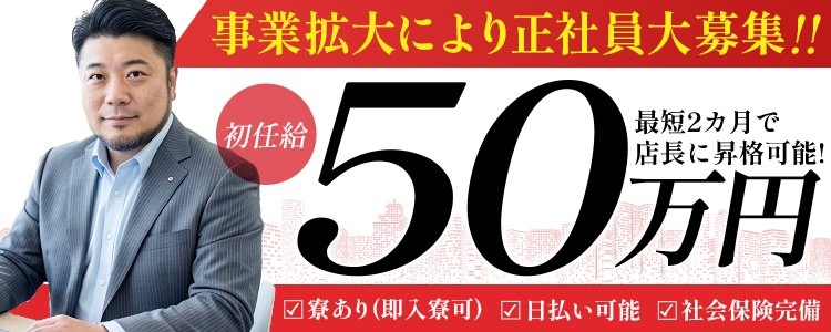 【法令遵守の業界最大手グループだから出せる初任給50万円制度】ヘブン全国総合1位、ヘブンプレミアム全国1位、日本を代表する業界最大手!ウルトラグループは正社員を積極採用中!!強い意欲のあるアナタなら積極的に昇給・昇格させることを約束します!!風俗のお仕事が全くの未経験でもサポート体制は万全です!!