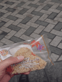 この前出勤前におにぎりを買ってお店の横で食べようとしたんです。