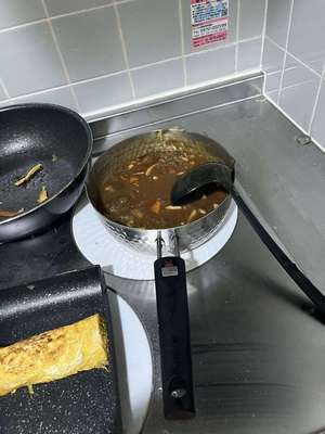 昨日のカレーを作りまして