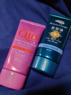 ●「Q10配合」は、メラニンの生成を抑え、シミ・ソバカスを防ぎながら、手肌の奥(角層)まで素早くなじみ、ハリ・ツヤ・うるおいが続きます。ジェルとクリームの中間のようなテクスチャー。ホワイトフローラルの良い香り、伸びが良くベタつかないナイアシンアミド配合で、すべすべになります。