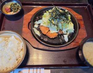 懐かしい昭和風のとんかつ定食を