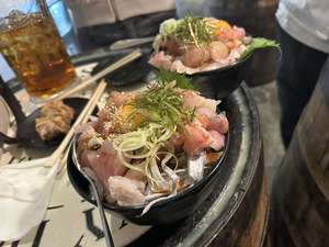 写真はその日使える鮮魚をどっさり使った海鮮丼!