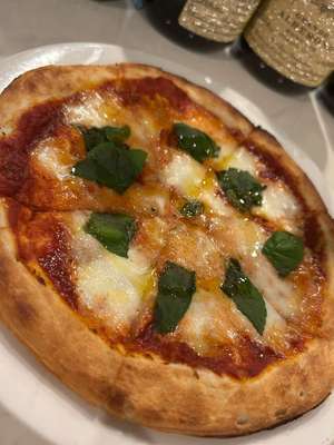 ピザ生地だけ頂いて、ソースとモッツァレラチーズとバジル持ち込んで(笑)