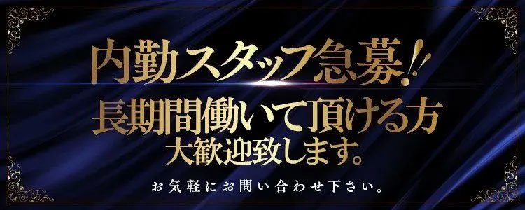 ■対面接客・受付業務 お客様からのお問合せや来店されたお客様の案内を行っていただきます。 予約の確認や、会計作業、注意事項の喚起などをお願いします。 簡単なマニュアルや、先輩スタッフに付いて業務内容を見ながら徐々に覚えていただきますので、未経験の方でも安心して働けます。 ■PC更新業務 ヘブンネットなど、ポータルサイト等の店舗情報更新作業を行っていただきます。 キャストの出勤情報やイベント、求人ブログの作成となります。 基本的にはボタンを押すだけや、ブログの更新時に簡単に文字が入力出来れば問題ありません。 PCが苦手な人でも簡単にできます。 ■企画の立案 店舗イベントや店舗運営など様々な企画を提案していただきます。 【新規のお客様の増加】【お客様のリピート率の向上】【キャストの方の入店数の増加】など、売上UPに繋がる施策の提案を行っていただきます。 ■清掃・備品管理 お客様やキャストの方に快適にお過ごしいただくため、店内の清掃や備品の管理・補充を行っていただきます。 ■キャスト管理 お店で働いていただいているキャストの方が稼げるようにインターネットを使ったPR(写メ日記)などの使い方などのアドバイスを行っていただきます。 |