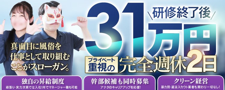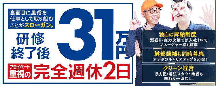💮〝完全週休2日勤務〟で研修終了後31万円~支給!風俗特有の長時間労働も徹底廃止!