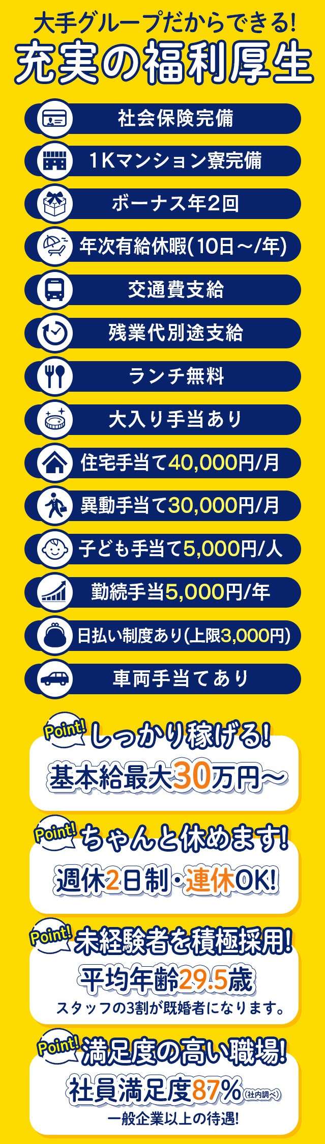 大手グループで安定した経営だからこそ、基本給30万円からスタート!さらに福利厚生も充実!住宅手当、子...