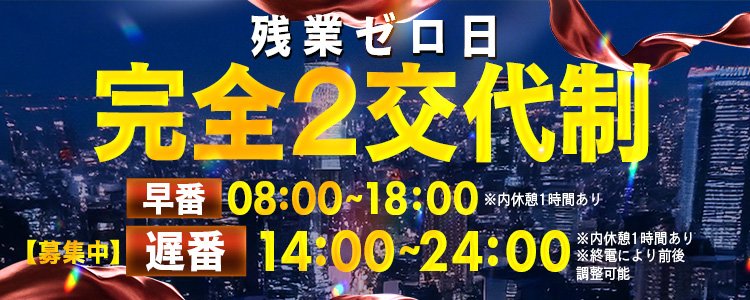 【営業時間】 08:00~24:00 【正社員】10時間勤務(実働9時間) ■原則残業なし |