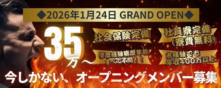 【新店舗グランドオープン|ゼロから一緒にお店づくり】 ・社会保険完備 ・社員寮完備(寮費無料) ・残業代完全支給 ・交通費全額支給 ・独立支援制度あり ・車通勤応相談 ■学歴・経験・職歴・年齢すべて不問 新店舗グランドオープンに伴い、スタートメンバーを大募集。 未経験の方でも年収400万円以上からのスタートで、平均年収は約600万円と、安定した収入環境をご用意しています◎ これから形をつくっていく新しいお店だからこそ、意見や挑戦も大歓迎。 「働く場所を一緒につくりたい」「成長できる環境で活躍したい」 そんな想いをお持ちの方をお待ちしております。 |
