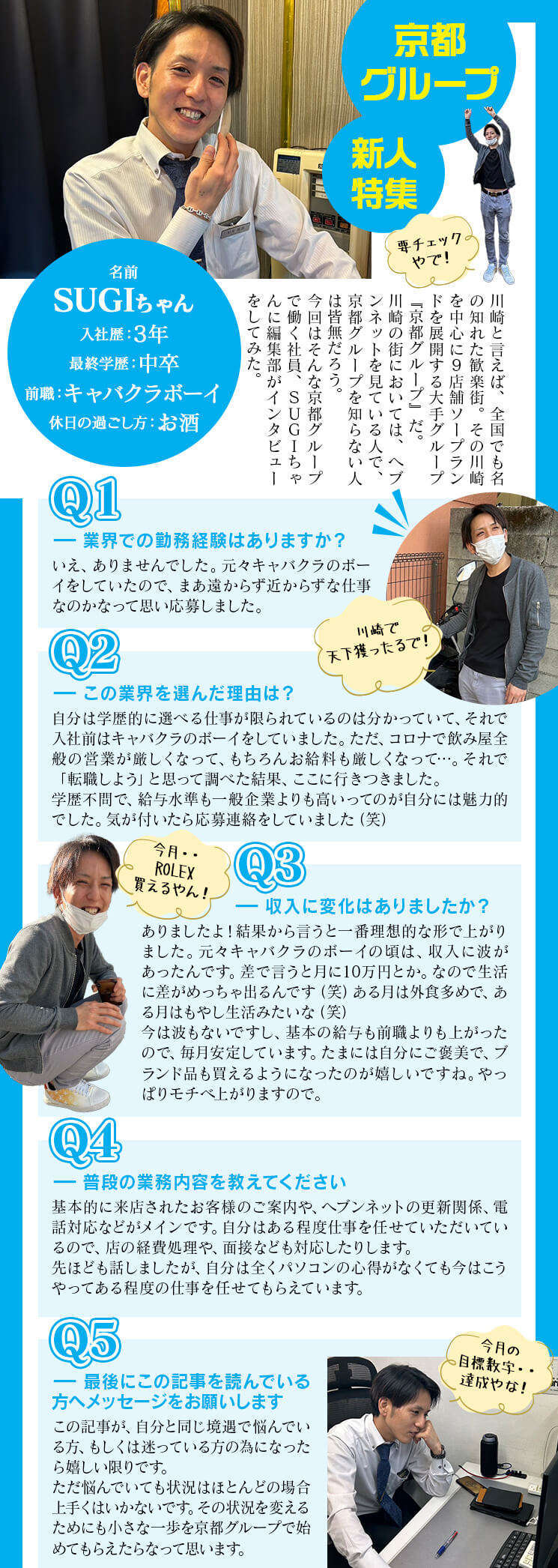 京都グループのいい所:難しい業務がないのですぐに覚えられましたし、お給料も短期間で上がりました!