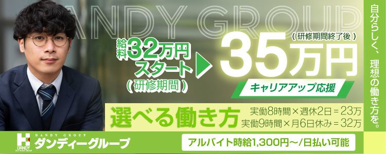 ダンディーグループでは、"管理職”を大募集しています! 今役職の枠が空いています!!! 特に、同業種でマネージャーや店長を務めた経験者のご応募を お待ちしております。 同時に女性店舗スタッフも募集しています。 元キャストで以前働いていた時に 『あの時こんな言葉をかけて欲しかった』 『きつかった時にこんな風に対応してほしかった』 そんな風に思ったことはありませんか? その時の経験を活かして 今度は店舗スタッフとして活躍してみませんか? 是非一度お話しを聞きに来てください! -100%復帰採用- 出戻りの従業員も必ず採用致します! 即戦力を求めております! 最初から女性スタッフ管理や営業管理業務に携わってもらいます! 当グループの仕事を知ってる方を待ってます!! ※前役職での復帰をお約束します! ダンディーグループならではの充実したお給料! 「手取り32万円スタート」にくわえ 大入り最大で「15万/月」で研修期間が終わり次第40万オーバーも可能♪ ※売上に応じて2000円~5000円の「大入り手当」支給! 毎日でもお渡しいたします!! 50歳以上も積極採用! 即入寮で入社後すぐに安定した生活ができます! お気軽にご相談ください。 初任給「手取り32万円スタート」というこの金額。 もしかしたら同業他社様が提示している給与よりも若干少ない場合もあるかもしれません。 しかもお給料は現金手渡し! ※希望により社会保険も加入可能です プライベートの時間を確保したい方は完全週休2日で働くことも可能! しかしこの業界の悪しき慣習として 多額の給与をちらつかせとりあえず来社を促し 面接の際に給与を含む待遇面を説明されるとほとんどの場合 “求人広告の内容と実際の待遇はだいぶかけ離れた条件だった” もしくは “待遇面はたしかに求人広告のとおりだったが提示されている金額を得るためにはとても不可能なほどの業務をこなさなければならず実際の手取り額は同業他社の募集と比べても遥かに見劣りするものだった” というような事が多く見受けられます。 全ての募集が必ずしもそうだとは限りませんが、その様な募集広告が多いのも事実です。 ただ多くの場合「限られた予算・スタッフ・人件費」で業務を回さなければいけない為、どうしても「募集の内容と実際の待遇が違った」といった状況になるのは致し方ないところ。 当社では創業より全国に17店舗を展開するまでに成長を続けてきました。 初任給「手取り32万円スタート」 これは嘘偽りなく貴方が最初に手にするお給料の金額です。 シフト制ですので希望シフトも考慮していますので いつでもご相談ください 業界大手だからできる嘘偽りのない待遇で貴方の将来をサポート致します。 ※ワンポイントタトゥー、髭、ピアスでも採用可能! |