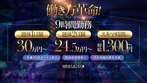 1日9時間勤務(残業ナシ) 月火水木金土日 週休2日制 完全固定休となります |
