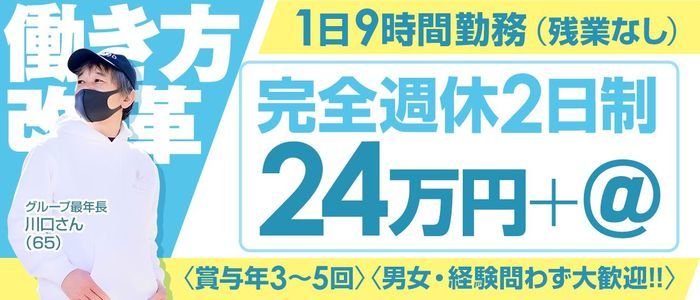 \20歳〜65歳まで、未経験の方も大歓迎!/ 私たちがもっとも大切にしているのは、**“仲間を思いやる人間性”**です。 その想いが代々受け継がれ、私たちの大きな成長へとつながってきました。 チームワークとスタッフ一人ひとりの努力が、今の強い会社を築いています。 また、頑張りをしっかり評価するステップアップ制度も導入! 初任給24万円スタートから、1年後に月収60万円を実現したスタッフも! 現在、空きポストあり! あなたと一緒に働けることを、心より楽しみにしています。 |