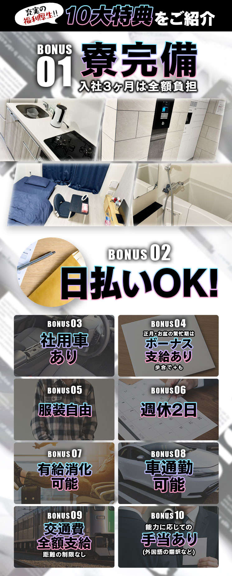 一般企業と同じくきちんと休みが取れるように待遇をご用意してあります。