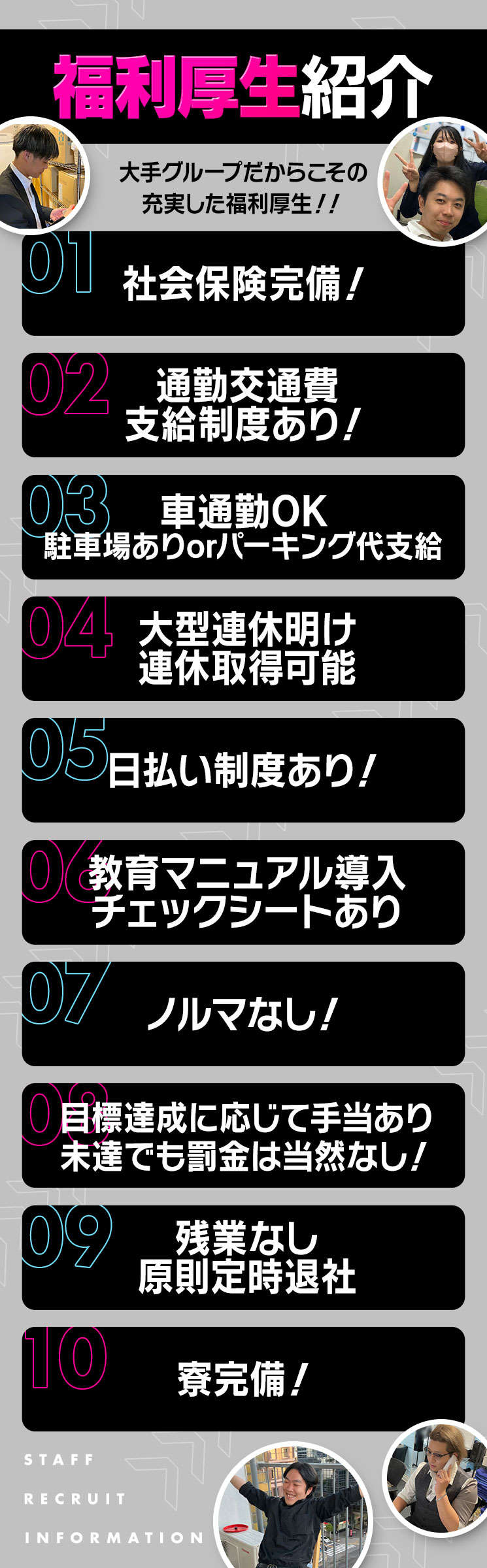 歩合あり、残業手当てあり、有休あり、ボーナスあり、研修期間あり