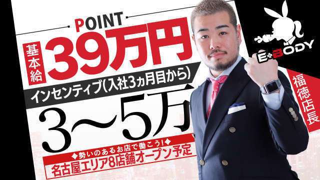 東海でトップクラスの給与&成長環境!E+Group名古屋は、東海エリアで最も給与水準が高く、成長スピードの速いお店です。大手グループだからこそ、明確な評価基準があり、努力が確実に報われます。未経験からでも、適正に評価され、確実に昇給・昇格できる環境が整っています。出店スピードも業界トップクラスで、ポストも次々と生まれているため、幹部への道も早いです。ただの「仕事」ではなく、本気で稼ぎ、キャリアアップを目指せる場所です。1年後、2年後には必ず月収100万円を超えさせます!これほどのスピードで成長できる職場は他にありません。本気で変わりたい、成長したい、そんな仲間を大募集!
