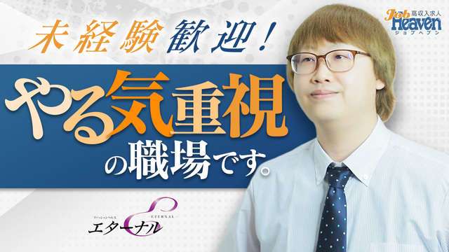 何も知らずこの業界に飛び込み早1年となりました。週6勤務は月給30万からのスタートで、もうすぐ昇給!?楽しみですね♪未経験者から見たEternalですが、分からないことは積極的に教えて貰える、カバーして貰えるから積極的にチャレンジできる、社内の風通しは良く仲がいいetc...という感じで安心して働くことができました最初は「丸1日働くのかなぁ」とか「残業多いのかなぁ」という業界イメージ。そういう会社が多いですからね…でもここは定時になれば帰らされます。というか皆帰ります。皆、仕事熱心ですがプライベートとの区別はしっかりあって働きやすいです。これを読んでるあなた!ぜひ