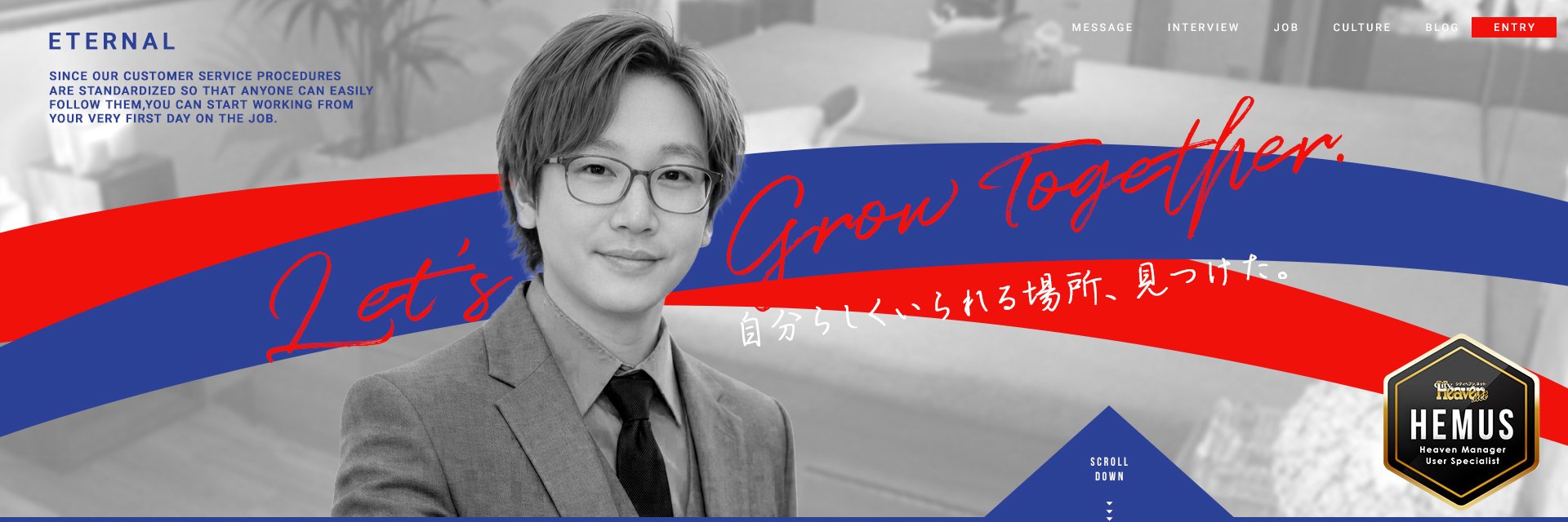 何も知らずこの業界に飛び込み早1年となりました。週6勤務は月給30万からのスタートで、もうすぐ昇給!?楽しみですね♪未経験者から見たEternalですが、分からないことは積極的に教えて貰える、カバーして貰えるから積極的にチャレンジできる、社内の風通しは良く仲がいいetc...という感じで安心して働くことができました最初は「丸1日働くのかなぁ」とか「残業多いのかなぁ」という業界イメージ。そういう会社が多いですからね…でもここは定時になれば帰らされます。というか皆帰ります。皆、仕事熱心ですがプライベートとの区別はしっかりあって働きやすいです。これを読んでるあなた!ぜひ