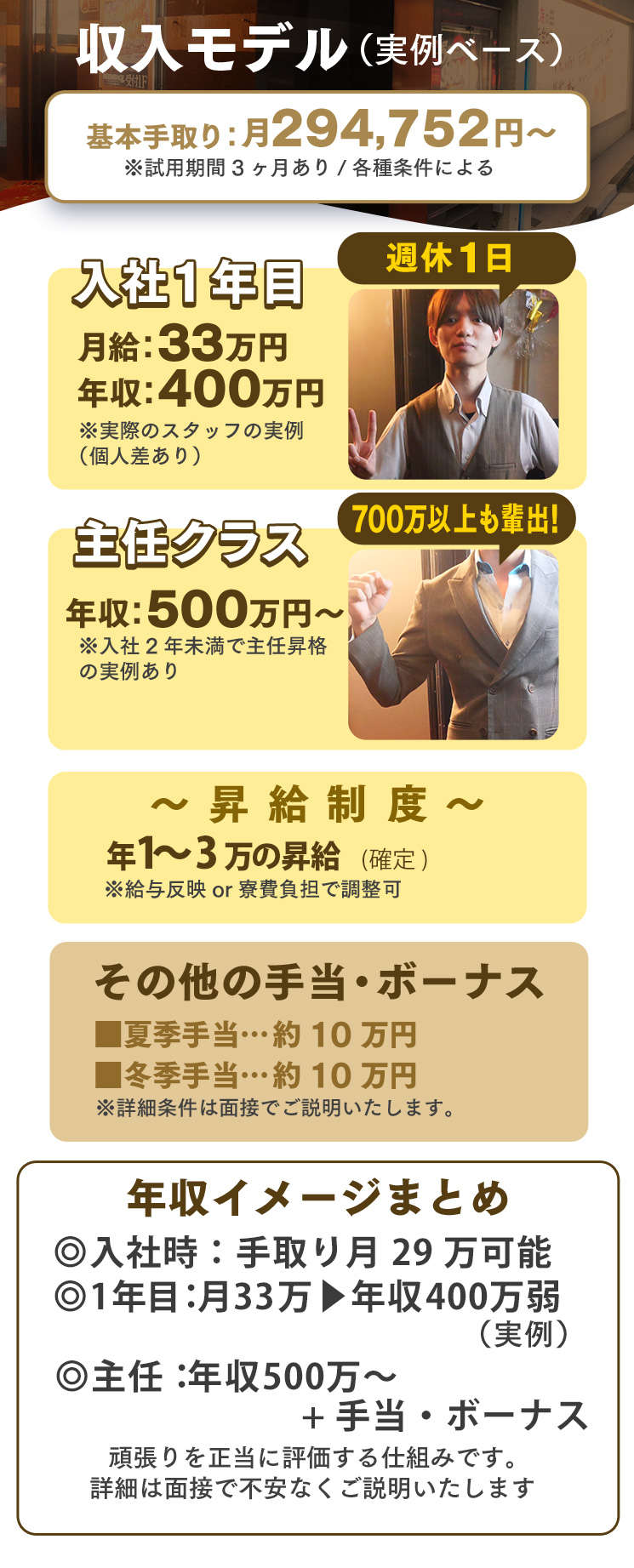 ‣ボーナス支給アリ(お店の売上が一定以上の月に支給)