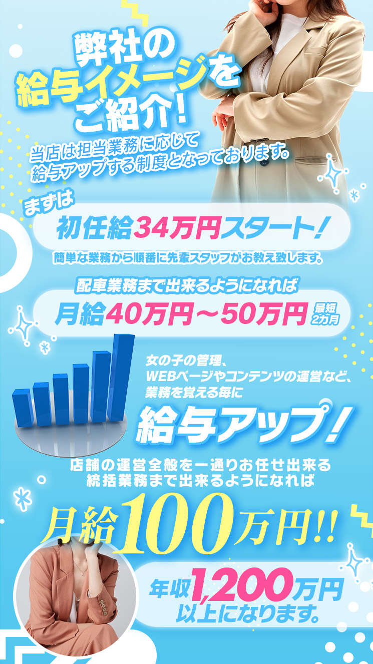 入店祝い金10万キャンペーン!月給38万以上!!男女店舗スタッフ・ドライバー大募集☆「自分の力をためしたい!」 「有名店で頑張ってみたい!」 「未経験でも安心できるお店で働きたい!」 と思う皆様!!是非ふるってご応募下さい!!