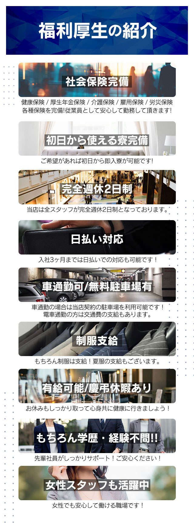 ・制服支給(スーツ・ワイシャツ・ネクタイ)