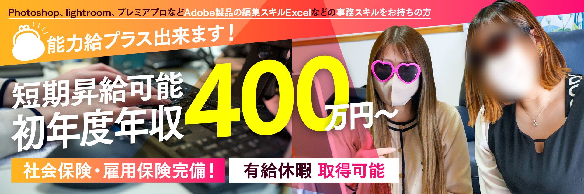エクセル、Photoshop、lightroom、プレミアプロなどAdobe製品の編集スキルをお持ちの方は更に大歓迎致します。