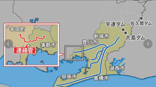 連絡管「幸田蒲郡線」を使い、幸田浄水場から取り込んだ矢作川水系の水を、東三河地域へ供給することが決定しました。