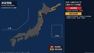 岩手県・青森県・北海道周辺で発生した地震に伴い、津波警報が発表されています。