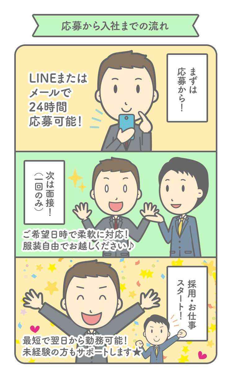 直接、お電話・メールでも応募できます。携帯からの場合、ドメイン指定受信を解除してください。