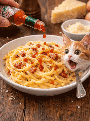 「俺はカルボラーナにもタバスコかけるよ。大量に!」