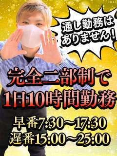 【勤務時間】早番/8:00~17:30 遅番/15:30~25:00