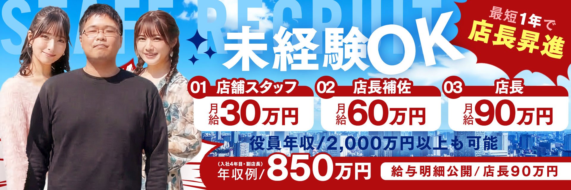 ■店舗スタッフ ■Web運営スタッフ ■店長/幹部候補 ■送迎ドライバー ■Webエンジニア
