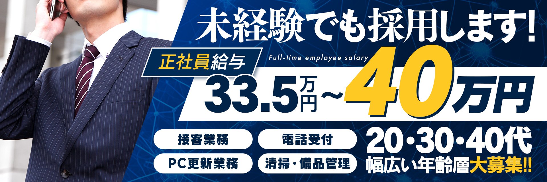 【正社員33.5万円~月6回休み】接客・案内・清掃など簡単業務|20代~40代くらいまで未経験可。