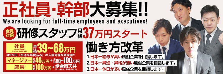 シグマグループは創業20年を超える 関西最大手のデリヘルグループです。 特別なスキル、経歴は一切不要。 女性と接するのが苦手な方でも大丈夫! 入社して成果を上げている ほとんどの人が未経験です。 勤務の真面目な方は評価します! ★フロントスタッフ★ ※店長以外のスタッフにもインセンティブ制度があります! 初月から手取り35万以上、 半年勤務で月給手取り50万円以上、 1年で月給100万円以上も可能!! 誇大広告ではありません。 まちがいなくお給料が取れるしっかりした教育制度があります! 年収1000万円は通過点!!!!!! 一緒に日本一を目指して頑張りましょう! 【主な業務内容】 ・ドライバーの配車 ・女性キャストのシフト管理 ・電話接客 (デリバリーなので、対面接客はなし) ・広告サイトのWEB更新業務 (ビラ配りは一切ありません) パソコンスキルに自信が無くてもタイピングから研修を行います。 ※「PCを仕事で使ったことがない…」 そんな新人スタッフも多数入社しています。 恥ずかしがらずに一緒に頑張りましょう! 【明確な評価システム】 1ヶ月毎にスキルアップチェックシートがありますので、 日々、成長を確認しながら、 正しい評価を行っていきます。 |