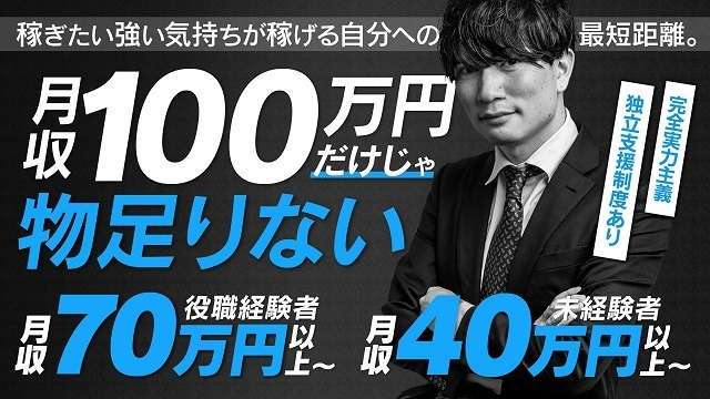 ~店舗スタッフ~ ■■仕事内容■■ ◎接客業務 ◎ホームページの更新業務 ◎店内の清掃業務 ◎キャストの教育指導業務 ■■POINT■■ ◎日払い最大5,000円まで可能 ◎社会保険・厚生年金完備 ◎寮/社宅即日入居可 ◎毎月全員に個人達成手当支給 ◎非喫煙者、普通免許所持者には毎月手当支給 ◎年末年始休暇 ■■■チャレンジしやすい待遇であなたを応援■■■ ●学歴不問、髪型自由、ピアスもタトゥーもOK。 見た目や学歴は問いません。やる気を評価するグループなので、誰でも頑張り次第で1年以内に店長に昇格することも可能です! ●日払い最大5,000円まで可!! 急な出費や支払い期日もこれで安心!日払いで給料を最大5,000円までお支払いする事が出来ます。 ●アルバイトは完全シフト制!! アルバイトの勤務は週に3日~でOK!完全シフト制なので、自分の予定も組みやすく、無理せず勤務する事が出来ます。 ●即入寮可能な寮完備!! 全室一人部屋のキレイな大型寮に即日入居可能です。地方から大阪に移住を考えている方も安心。 ~送迎ドライバー~ ■■仕事内容■■ ◎キャストの送迎業務 お客様の滞在されているホテルやご自宅まで、キャストを安全運転かつ時間厳守で送迎するお仕事です。 ■■POINT■■ ◎キャストと特にコミュニケーションを取る必要はありません。 ◎別途ガソリン代支給 |