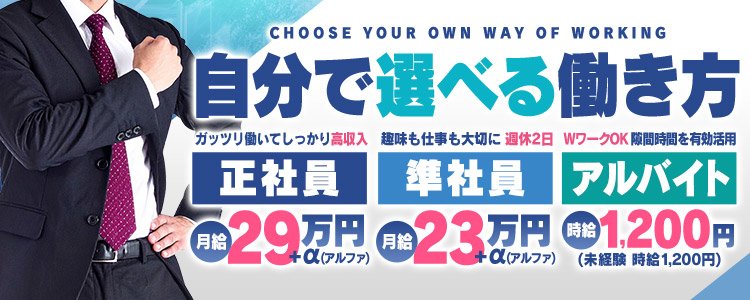 ・18歳以上(高校生不可) ・普通自動車免許をお持ちの方は優遇 ・健康的で元気、ハキハキと働ける男性大募集 ・学歴不問 ・未経験者歓迎 ・職種経験者歓迎 ・ブランクOK ・キャスト経験者も歓迎 |