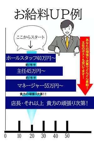 入社歴に関係なく、随時昇給・昇進のチャンスがあります。評価基準は「実力・実績・やる気」。あなたの本気次第で収入は大きく変わります。