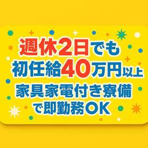 週休2日でも初任給40万円以上!家具家電付き寮完備で即勤務OK