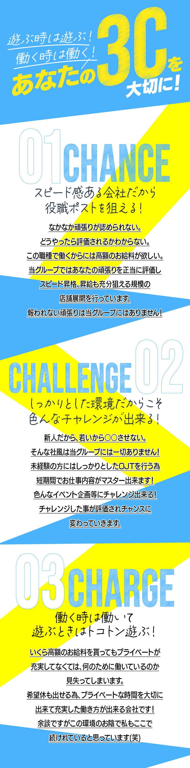 当店は、昇格・昇給制度を年2回設けており、年齢経験問わず直ぐにステップアップできる環境が整っております。