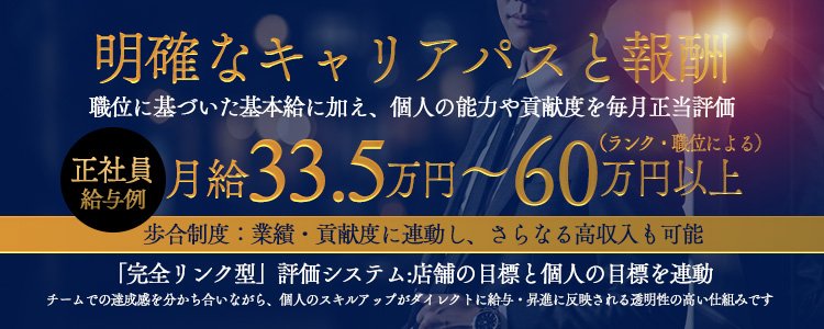 その月の目標金額を達成した業績に応じて給与が加算されます。 交通費1万円上限で支給。 アルバイトは時給1300円スタートです。 メインで入れるスタッフを正社員と定めております。 アルバイトからの昇格も可能です。 |