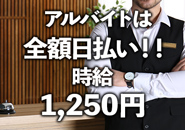 社員登用後 1ヶ月目 35万円~ 3ヶ月目 38万円以上可 ◆日払いアルバイト 時給 1,250円 ※他に、1日通して勤務していただく日給14.000円のタイプもあります。 |