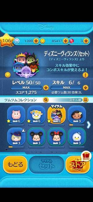 ツムツムの「ヴィランズツムセット」が祝スキルマになりました
