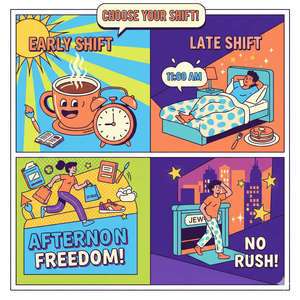 ぐらどるえっぐは早番遅番選べちゃうんです!