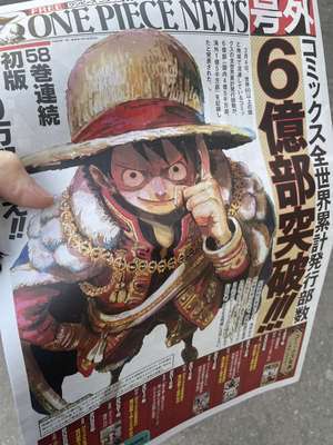 貰ってみましたら、ワンピースの快挙の号外でした…!