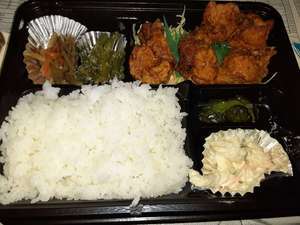 写真はスタッフが頼んだ唐揚げ弁当です。