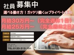 仕事もプライベートもあなたのライフスタイルに合わせた勤務体系です ①プライベートを大切に使いたい「休み重視派」の方 【完全週休2日制】月給28万円 ②がっつり稼ぎたい「給与重視派」の方 【月5日休】月給35万円 ※働きながら勤務スタイルの変更も可能です ※有給休暇有り 【アルバイト】 6,000円 ※もっと稼ぎたい方は面接時にお伝えください。 |