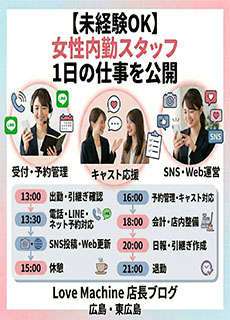 このブログでは、Love Machine の店長が女性内勤スタッフの仕事内容を分かりやすくお伝えします。